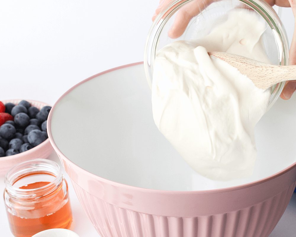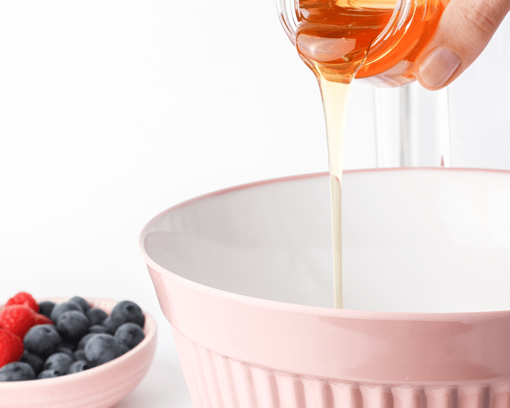 3 – Mischt den griechischen Joghurt mit dem Honig und dem Vanille-Extrakt.