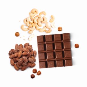 1. Vollmilch-Schokolade mit Haselnüssen, Honig Salz Mandeln und gesalzenen Cashews