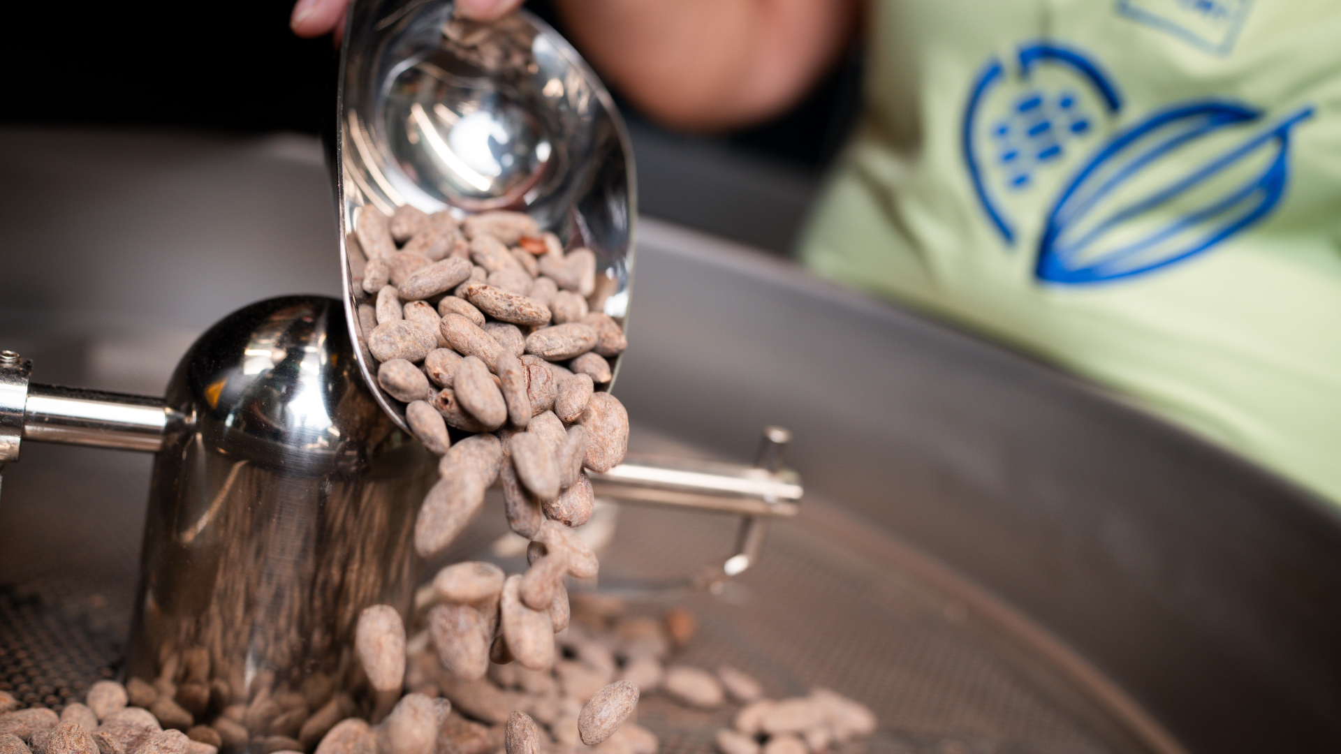 Zum einen gibt es genaue Spezifikationen, wie unser Kakao schmecken muss. Jede Lieferung, die hier in Waldenbuch ankommt, wird – bevor der LKW entladen werden darf – von speziell dafür ausgebildeten Kolleginnen verkostet und in unserem Labor genau geprüft. Aber wir setzen schon viel früher an: Für eine gleichbleibende Qualität des Kakaos ist die enge Zusammenarbeit mit unseren Lieferanten und den Bäuerinnen und Bauern ein ganz wichtiger Punkt. So merken wir schneller, wenn da etwas schiefläuft.